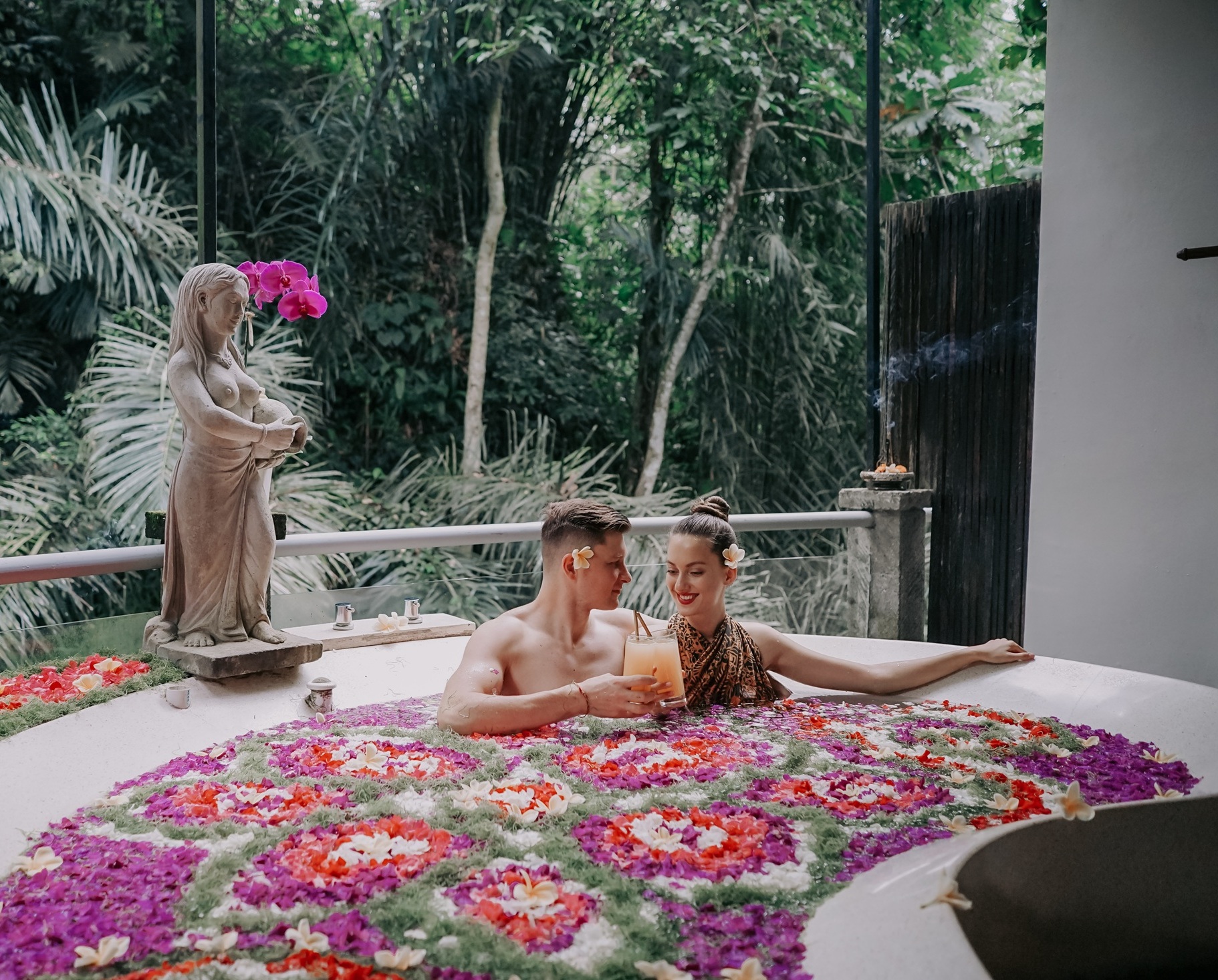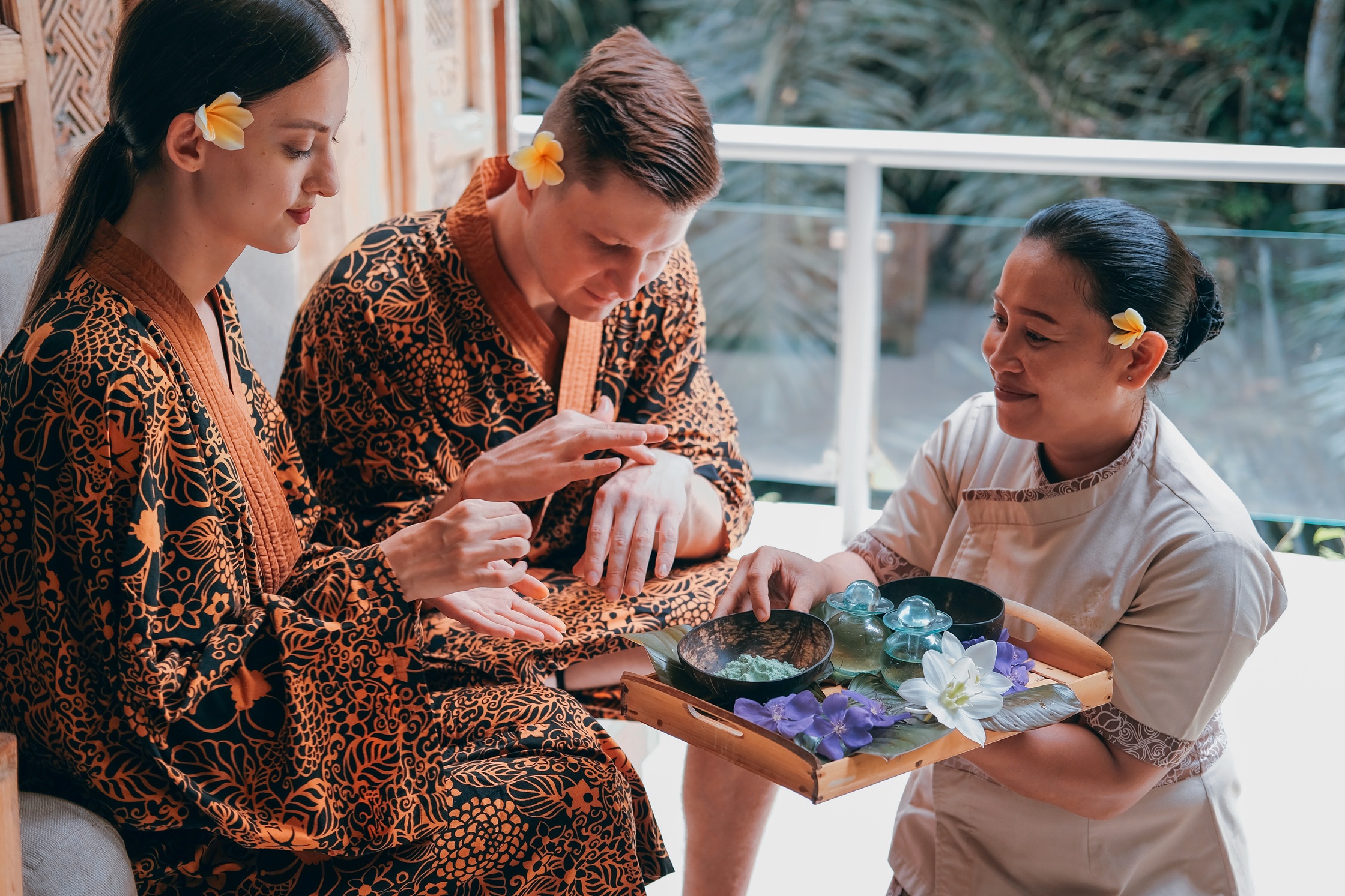 Embrace this defining body ritual in a romantic setting with your loved one. After our signature foot-bath, enjoy of Balinese Massage continue with Lemongrass and Mandarin Body Scrub and body mask to provide you with a moisturizing exfoliation leaving your skin glowing and bright. The last package enjoy our Romantic flower bath serve with 1 bottle of wine will complete this blissful body treatment experience.